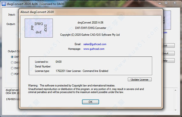 4、至此,dwgConvert(AutoCAD版本转换器) 2020 A.06破解版成功注册破解,运行打开软件,用户可以无限制免费使用啦
