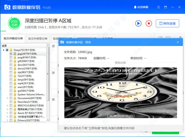 对更难恢复的文件执行更深入的扫描,深入磁道空间扫描,丢失文件无处藏身