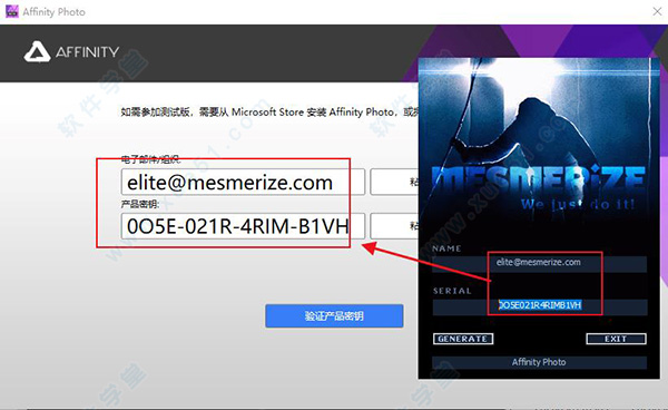 4、运行注册机生成注册码,运行软件并将注册码复制到注册框中