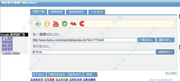 稞麦视频下载器是一款实用的视频下载器,它可以下载CNTV流媒体,乐视(Letv),百度贴吧(tieba.baidu),优酷(Youku),土豆(Tudou),酷6(Ku6),56等等重要视频到本地。xmlbar完全免费而且不含有任何第三方插件,可以完全干净卸载。用户只需输入需要下载的视频的网络地址并按下下载按钮,或者更方便的使用拖放方法将页面地址从