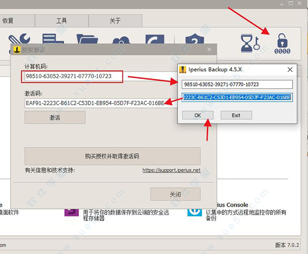 4、安装完成运行软件,运行数据包中的注册机,将计算机码复制到注册机上点击“OK”即可生成激活码,再将激活码复制到软件点并点击激活。