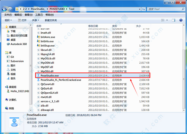 1、在本站下载好压缩包,解压缩文件,打开“POSESTUDIO”文件夹,在“Tool”文件夹下双击运行“PoseStudio.exe”程序;