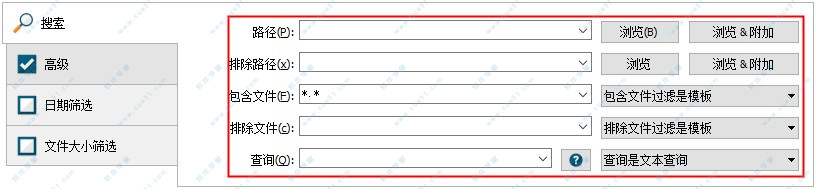 搜索软件,它由二进制堡垒软件运营,它的优点在于操作简单,功能齐全,多线程技术来提高搜索速度,使其能够胜任任何 Windows 搜索。不但能搜索文件名,还能搜索文件内容,这样用户就能快速无误地查询到自己想要查询的内容了。它包含在计算机或网络上的几乎任何内容需要搜索的所有控件。搜索页面分的非常细,包括路径、浏览和附加、排除路径、浏览、包含文件、包含文件筛选器是模板、排除文件、排除文件过滤是模板、查询、查询是文本查询。FileSeek Pro比较容易上手,且界面美观大方,各个功能都能一眼看到,不会出现杂乱的情况。有兴趣的小伙伴可以来试试,妈妈再也不用担心我找不到文件啦。欢迎下载