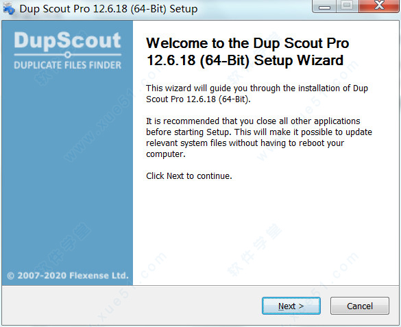 1、下载好Dup Scout(电脑重复文件删除软件) 12.6.18文件包,然后运行dupscoutpro_setup_v12.6.18.exe程序,进入软件安装向导界面