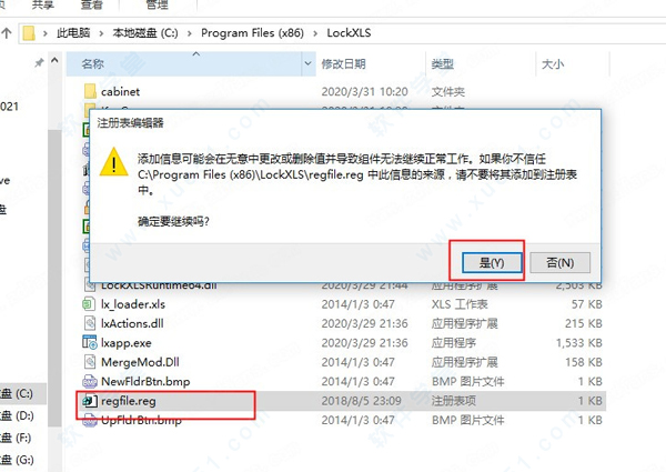 1、将regfile.reg注册文件复制到软件安装路径下,并运行打开它,弹出界面点击是即可成功添加注册表信息到软件中