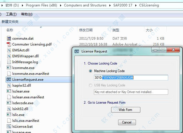 1、打开软件安装目录中的一个程序“LicenseRequest.exe”,默认路径为C:\Program Files (x86)\Computers and Structures\SAP2000 17\CSiLicensing,并且记录该字符串