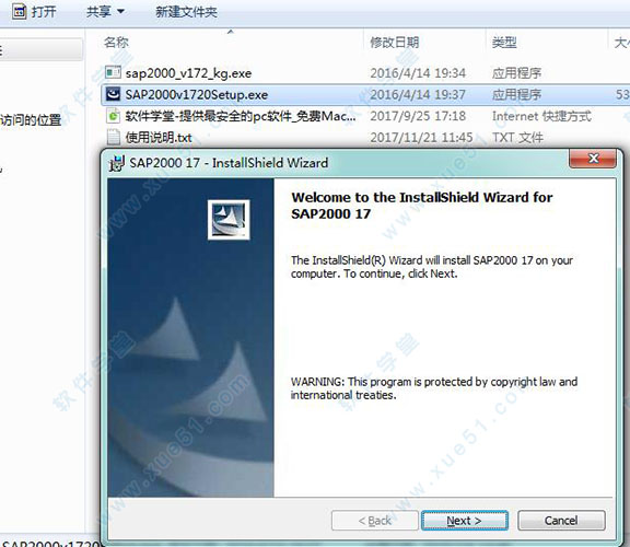 1、运行从本站下载的文件夹中的“SAP2000v1720Setup.exe”启动软件的安装向导