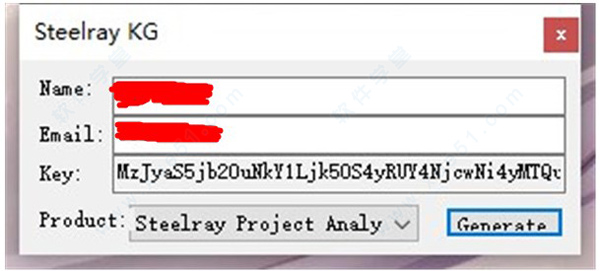 3、软件安装成功后,然后运行kg.exe注册机,填写好用户名和邮箱地址后,点击Generate获取并生成注册码