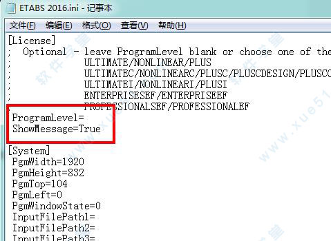 3、找到安装路径中的ETABS 2016.ini文件,并且用记事本打开