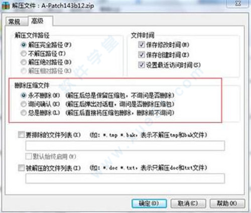 有时文件解压成功后,我们就不再需要那个压缩包,如何方便的在解压的同时自动删除原有压缩包呢?这个只要你在使用好压解压的时候,点击“高级”标签栏,这里就可以如图进行操作选择。
