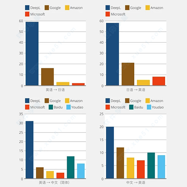 国外不少媒体都称它为 能“碾压 Google 翻译”,甚至,一些网友测试就连翻译文言文这种高难度动作都能完成,所以它突然间在各大社交平台上火了起来也不足为奇了。而且软件官方博客上也放出了来自不同领域的 119 个文本段落翻译结果的“盲猜打分”的对比,翻译质量直接秒杀了谷歌、微软、亚马逊等三大国外翻译云计算 API,比国内有道、百度也略胜一筹。