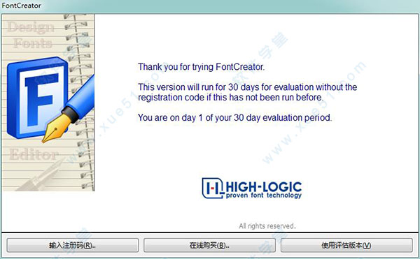 1、因为软件是绿色版本,所以在下载文件中找到FontCreator.exe并且运行就能打开软件,软件打开会弹出一个激活窗口,选择“输入注册码”