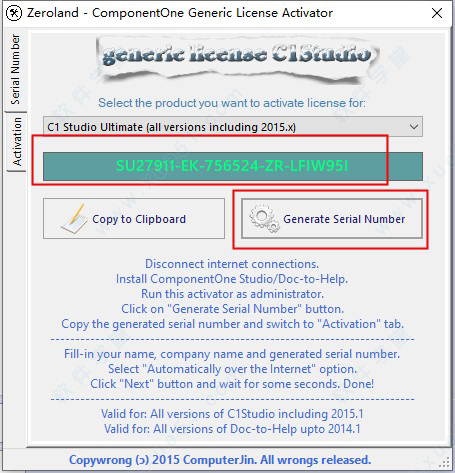 3、进入Crack文件夹,以管理员身份运行Generic.C1.LicenseActivator.exe注册机,点击“generate......”获取并生成注册序列号