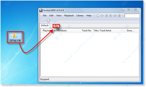 2、当我们开启软件播放视窗之後,可以直接将MP3或其他格式的音乐档用滑鼠拖拉到视窗中来播歌。