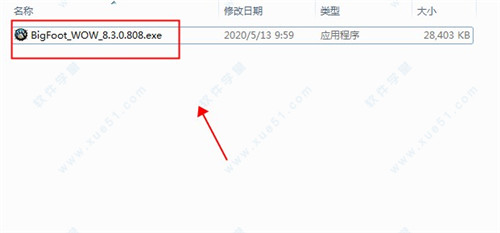 1、从本站下载解压后站找到“BigFoot_WOW_8.3.0.808.exe”安装向导,双击运行。