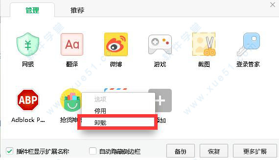 一、如何删除360浏览器插件栏里的惠惠购物助手1、打开360浏览器,在浏览器工具栏里点击”管理扩展“;