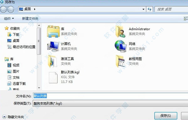 2、另存为-YY伴侣列表.kgl(注意必须是kgl文件才能够导入)