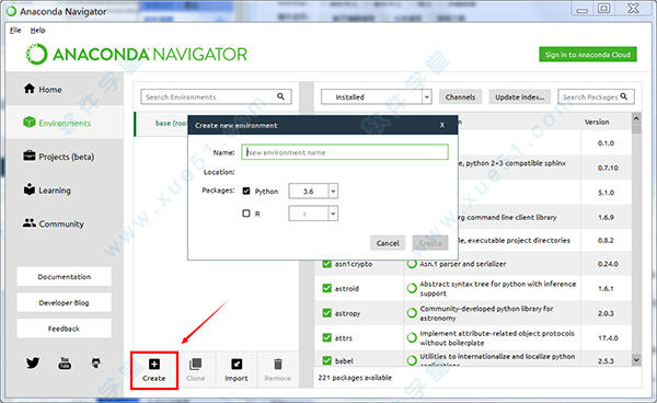 2、点击下面的Create可以选择下载python版本,要想切换python版本直接点击就可以了;