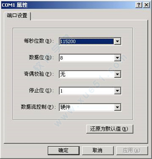 2、配置调试设备所连接串口“连接时使用”。