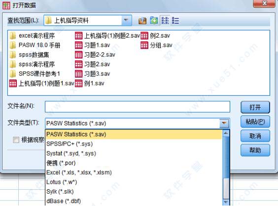 (1)按【文件】→【打开】→【数据】的顺序使用菜单命令调出打开数据对话框,在文件类型下拉列表中选择数据文件。