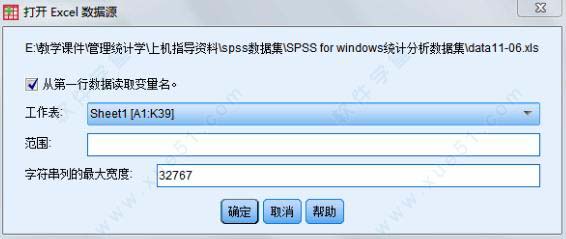 对话框中各选项的意义如下:工作表 下拉列表:选择被读取数据所在的Excel工作表。