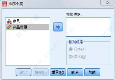 选择菜单【数据】→【排列个案】,打开对话框