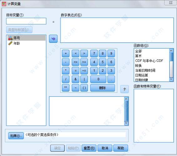 选择菜单【转换】→【计算变量】,打开对话框