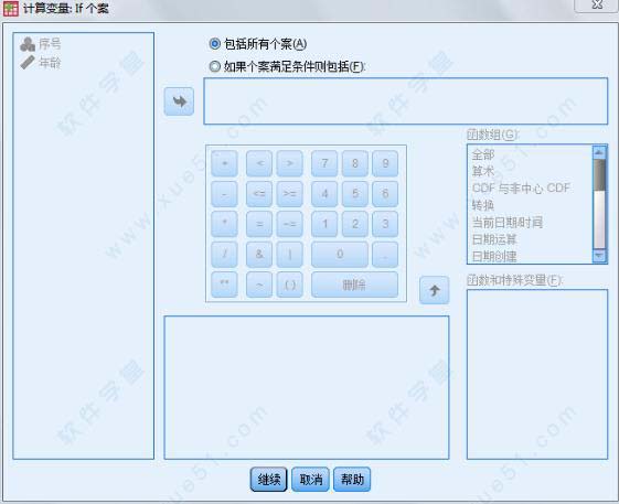 单击【如果】按钮,弹出子对话框。包含所有个体:对所有的观测进行计算;如果个案满足条件则包括:仅对满足条件的观测进行计算。