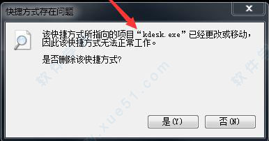 然后再找到上面第1步中提示快捷方式存在问题的文件,金山“桌面整理”的是“kdesk.exe”这个