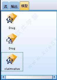 模型选项卡是管理器选项卡中功能最强大的选项卡。该选项卡中包含所有模型块,如当前会话中生成的模型,通过 PMML 导入的模型等。这些模型可以直接从模型选项卡上浏览或将其添加到工作区的流中进行数据分析。