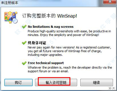 1、在本站提供破解版的安装包,软件是绿色的,无需安装,只要下载过来双击对应你电脑的版本即可打开软件,软件开打开后会提示订购,我们点击“输入许可秘钥”。