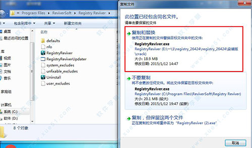 6、就进入了软件的安装目录里,将刚才复制的破解文件粘贴到目录里,弹出的提示框中选择“复制和替换”;