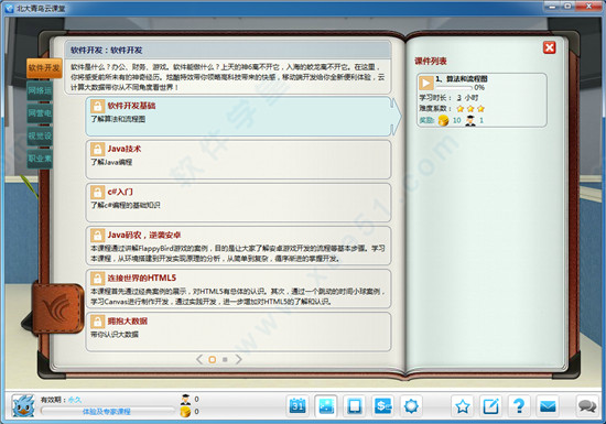 用户可以在技能书中挑选自己想学的课程,进行初步学习