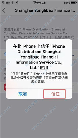 点击弹出的弹框中的“信任“。大功告成,可以愉快的进入App了