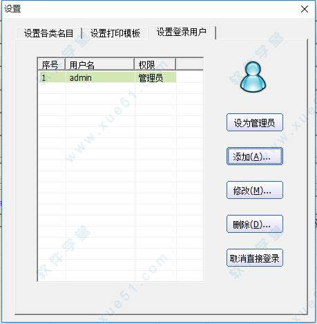 “设置用户”是可以使用软件的用户进行“用户名”和“密码”的设置。