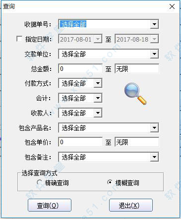 “查询统计”是对以往保存的收据进行查询统计。