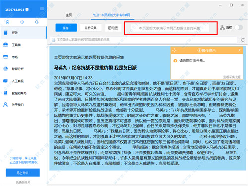 网页打开后,我们可以对任务名进行修改,不修改则默认以网页标题命名。在运行采集前可随时修改任务名。