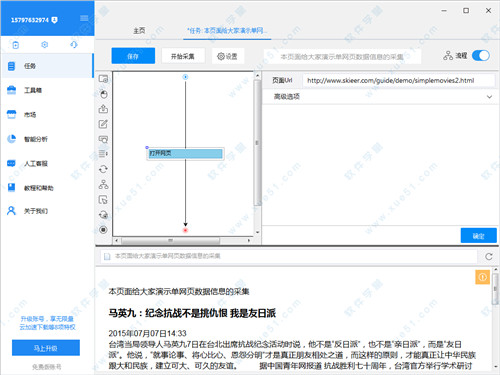 然后输入网址→保存网址,系统会进入到流程设计页面并自动打开前面输入的网址。