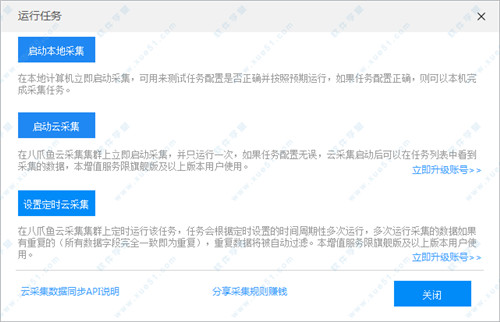 所有版本均可运行本地采集,旗舰版及以上版本可运行云采集和设置定时云采集,但运行云采集前先运行本地采集进行测试。