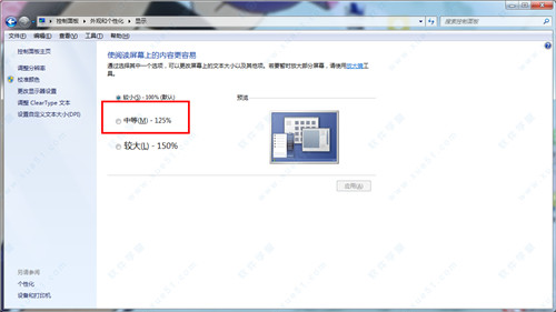 3、 选择“放大或缩小文本和其他项目,在“显示”设置窗口,如果默认设置的百分之100,就改为百分之125试试,如果默认设置的百分之125,就改为百分之百试试