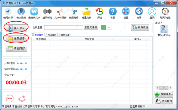 录音啦是一款功能相当丰富的的会议录音软件,该软件不仅仅只是用于录音而已,它还有录音转文字、电脑声音转文字、文字转语音等多种功能。由于该软件的功能强大,它已经被政府、银行、企业等行政人员广泛使用,因为这样可以节约大量的工作时间。目前该软件用的都是国内领先的识别引擎,分别是科大讯飞、捷通华声、云知声,百度,让是能语音识别更加精准,在开会的时候,能让声音迅速转换为文字,提高工作效率。需要的朋友快来下载吧!