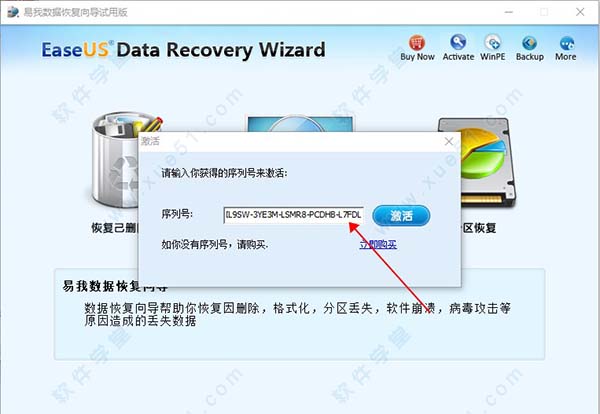 4、软件立马显示为易我数据恢复向导专业版,Activate激活菜单栏不见了,获取专业版权限,用户可无限制使用