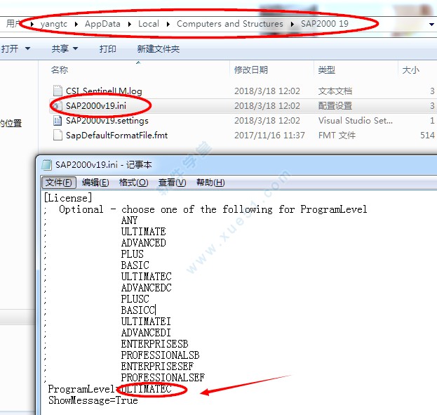 1、找到C:\Users\用户名\AppData\Local\Computers and Structures\SAP2000 19目录下的SAP2000v19.ini,将ProgramLevel=改为ProgramLevel=ADVANCED或者ULTIMATEC,ctrl+s保存,