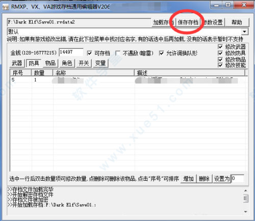 1、rpgvx修改器为RM XP、Vx、Vx Ace通用,自动备份原始存档,多次修改不会覆盖之前的备份。