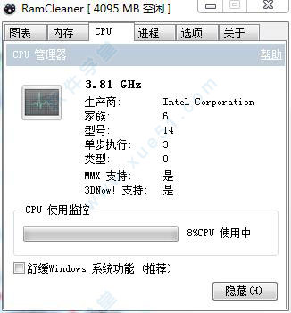 10、支持监控CPU的使用率,方便您了解电脑已经使用的运行空间