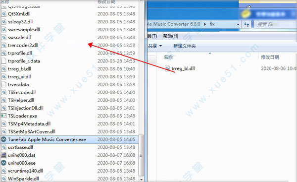 2、将破解补丁trreg_bl.dll复制到C:\Users\Administrator\AppData\Local\TuneFab\TuneFab Apple Music Converter路径下替换原文件即可激活软件