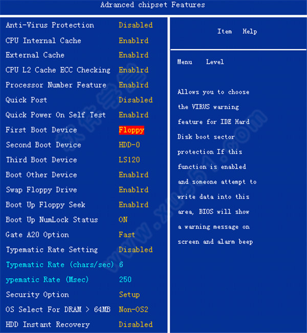 注意:以上图片仅以最常见的CMOS设置为例,如有不同,请参看主板自带说明书。当然,也可以通过开机按F12(或F10、ESC)等功能键,临时调用驱动器菜单,选择Floppy Drive(软驱)来引导软盘。