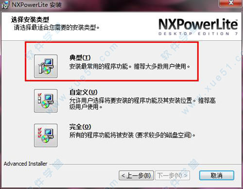3、根据自己的需要选择安装类型,类型不一样,功能也会有所不同;