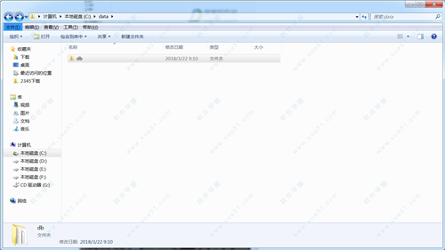 软件将数据目录存储在 db 目录下。但是这个数据目录不会主动创建,我们在安装完成后需要创建它。请注意,数据目录应该放在根目录下且与软件在同一磁盘下(C:\data\db)
