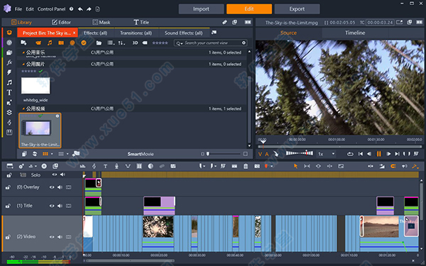 完全装有编辑下一个作品所需的所有强大工具,包括全面的色彩分级,新的视频蒙版,MultiCam编辑,绿屏效果等等。